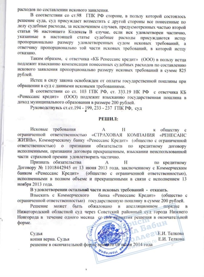 Зимой 2014 года к нам обратился К. Досрочно заплатив кредит в КБ "РЕНЕССАНС", он столкнулся с тем, что банк продолжал просто списывать ежемесячные платежи с внесённой суммы. Как только сумма была списана, банк стал требовать деньги снова, не согласившись с досрочным погашением кредита.