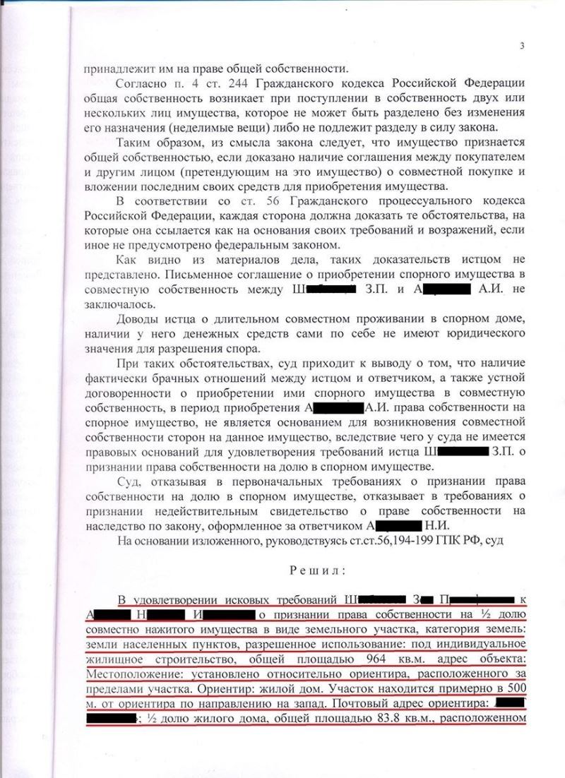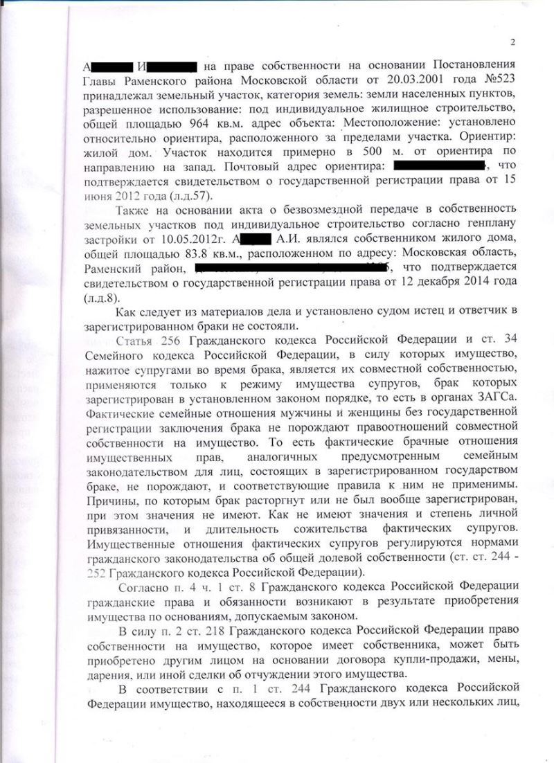 Постоянный клиент получил в качестве наследства от умершего брата земельный участок в Раменском районе Московской области. После чего в Раменский городской суд Московской области обратилась Ш. с иском признании за ней права собственности на ½ долю в данном земельном участке, поскольку она сожительствовала с умершим в период с 1995 года по 2015 год и частично оплачивала покупку земельного участка. В действительности же клиент оплачивал данные расходы на покупку объекта недвижимости и много лет помогал тяжело больному брату при строительстве на участке жилого дома.