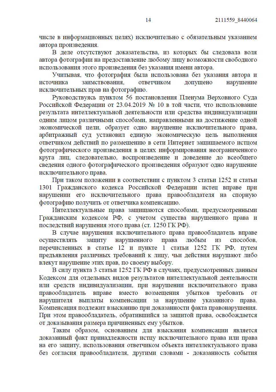 • Нарушение исключительных прав на фотографическое произведение