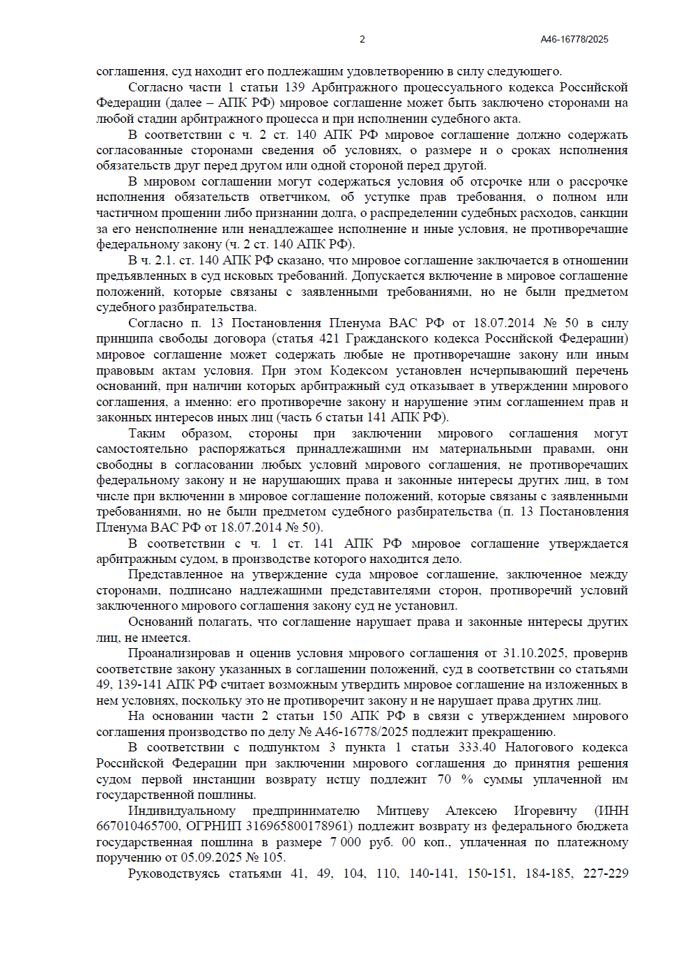• Денежная компенсация: согласована выплата в размере 37 800 рублей.