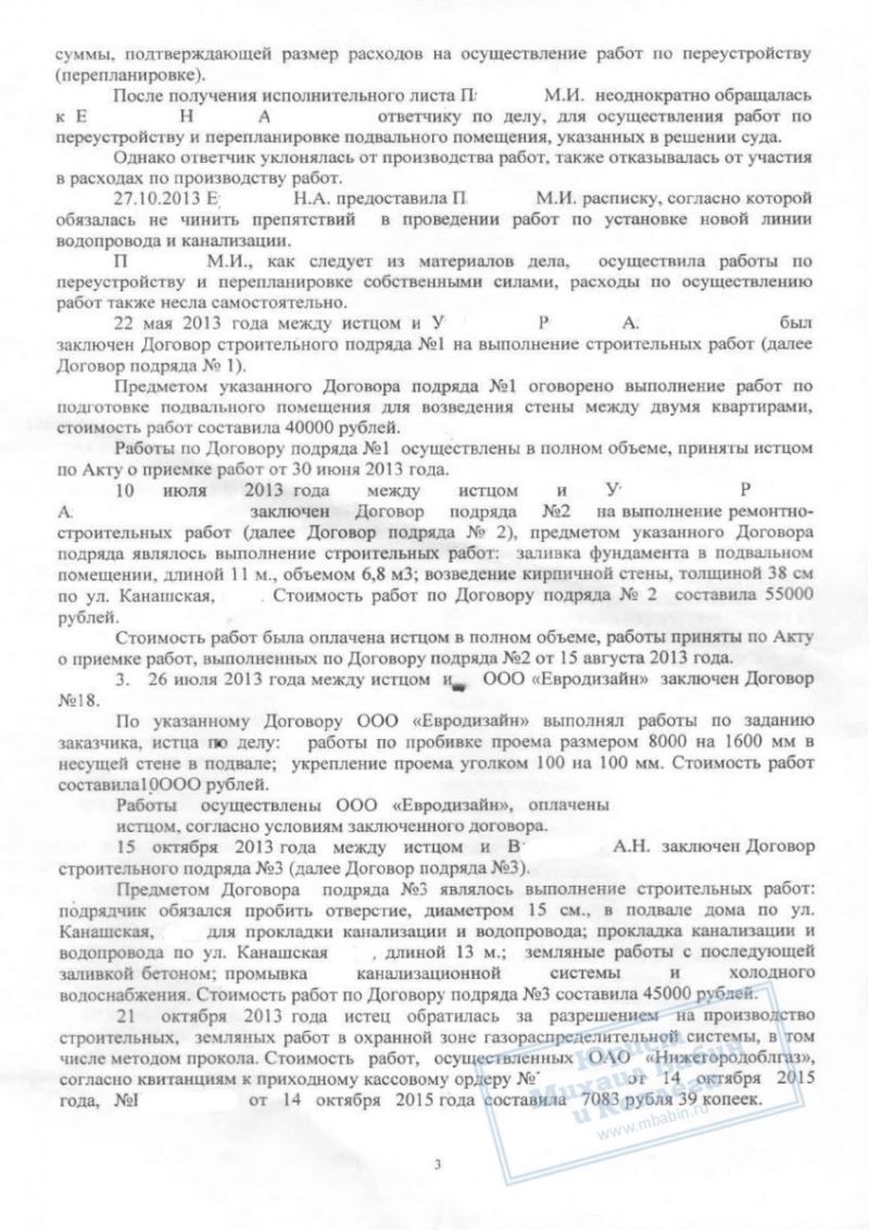 Все работы по переустройству дома взяла на себя М.П., тогда как её соседка не только не участвовала в организации работы, но и уклонилась в разделении расходов на ремонтные работы и закупку материалов.